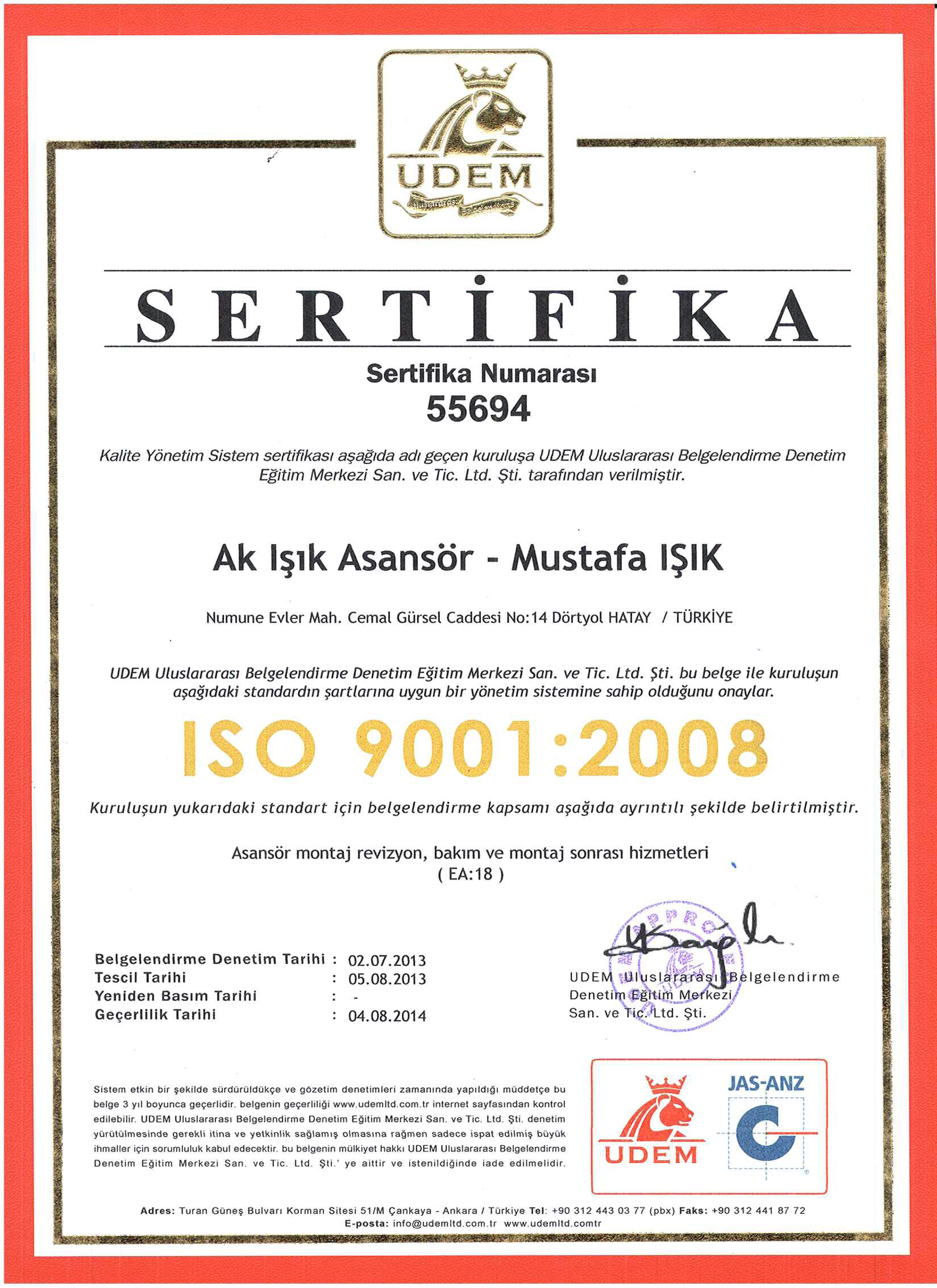 Firmamız, gelişen Türkiye’ de asansör sektöründeki tüm isteklere cevap verebilmek için 15 senelik deneyiminin ışığı altında, personeli ile sadece montaj, bakım, taahhüt değil; projelendirme, halkla ilişkiler ar-ge ve satış sonrası hizmetleri departmanlarındaki uzman kadrosu ile öncülüğünü ispatlamıştır. Firmamız kullanıcısına TSE belgeli bir kurumla çalışmanın kolaylığını ve güvenini sunmuş, ürünlerini projelendirmiş, 24 saat teknik servis veren, halkla ilişkiler destekli departmanı ile eksiksiz, satış sonrası hizmetlerini sunmuş ve de aranılan marka olmuştur.